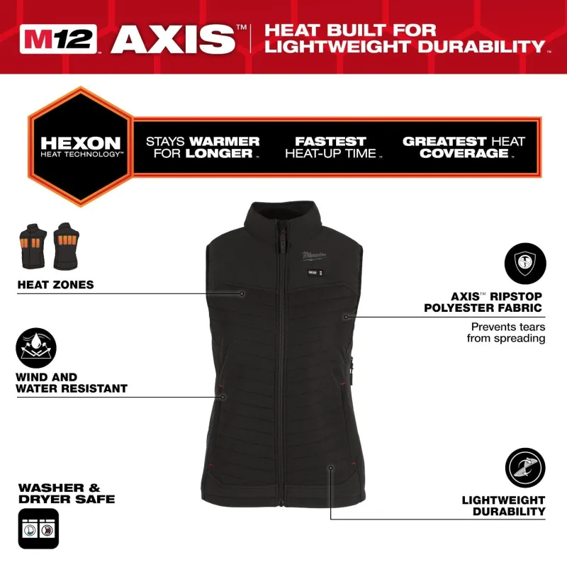 Milwaukee F300B-21 M12 Women’s Black Axis Vest with (1) 2.0 Ah Battery and Charger