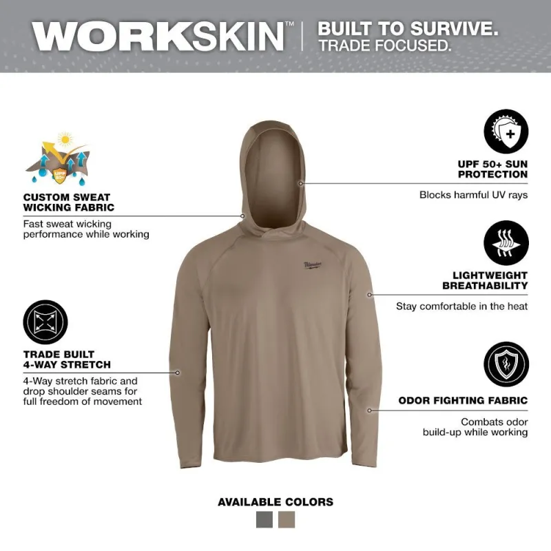 Milwaukee M550N-XL WORKSKIN Hooded Sun Shirt – SANDSTONE XL