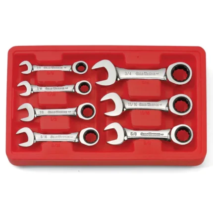 GearWrench 9507D 7 Pc. 72-Tooth 12 Point Stubby Ratcheting Combination SAE Wrench Set