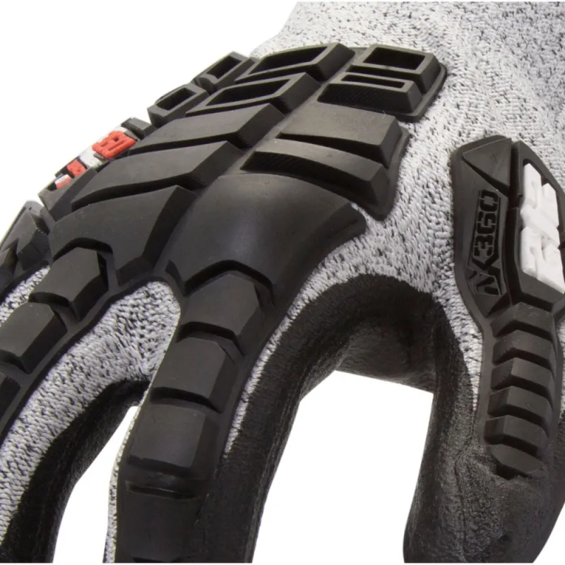 The AX360 Impact C3 is the light tank of 212 Performance Glove’s seamless glove line. Designed for protection with as little loss of dexterity as possible in mind, it gives you excellent protection against wear and injury. The thick knit cloth main body of the glove is fully seamless and made of a blend of breathable high performance polyethylene, nylon, and lycra fabrics that helps keep your hands cool and comfortable when working in the heat than regular leather or rubber work gloves while still providing a measure of protection. A flexible but heavy-duty TPR protective shield covers the knuckles, back of the hand, and runs the length of the fingers providing exceptional impact protection. The palm and fingers are dipped in nitrile foam rubber that is then textured to give both excellent abrasion resistance and superior grip in dry, wet, or oily conditions. Together these features provide you with EN 388 level 3 cut resistance and level 4 abrasion and tear resistance. The elastic cuff fits snugly around your wrist to keep out dirt and debris like gardening soil, sawdust, or metal shavings that can cause irritation if they get inside the glove. These gloves are perfect whether you’re gardening on a sunny day, doing woodworking projects in the garage, or sporting wrenches in the mechanic shop.