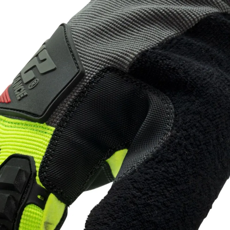 Keep hands warm and safe when working outdoors when the temperatures begin to drop with these outdoor winter work gloves from 212 Performance. These hi-viz accented winter work gloves feature a soft and comfortable fleece liner to keep hands toasty warm along with a waterproof inner membrane to block out heat sapping moisture. For added protection the back of the fingers and across the knuckle feature TPR rubber padding that provides protection from bumps and impacts. For added protection, the palm liner is woven of advanced fibers that provide it with ANSI A3 level cut resistance to protect against lacerations from sharp edges. The palm and finger pads of the glove also feature a reinforcing overlay that provides increased resistance to abrasive wear. A reinforcing patch on the thumb saddle provides added support to that high wear area. Because the heat can still be on despite cold weather, the back of the thumb is covered with a terry cloth material so you can keep sweat out of your eyes. The cuff features a rib knit design that fits snugly around the wrist to keep out dirt, snow, and debris while keeping in warmth. When the temperature outside drops and there’s work to be done, let 212 Performance keep you safe as well as warm.