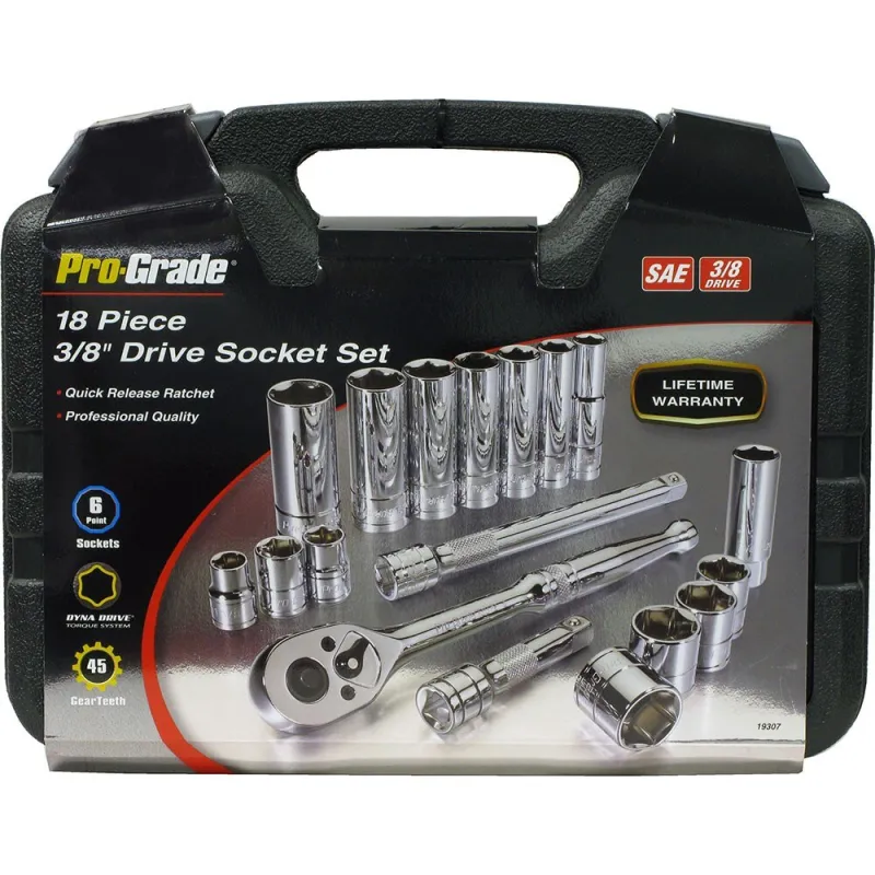 - (1) Drive 18 Piece SAE Socket Set In Case, 3/8″