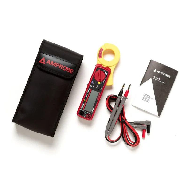 The Amprobe AC50A Clamp Multimeter with leakage current capability measures low AC current in the microamps. Great for applications requiring measurement of leakage and fault currents.