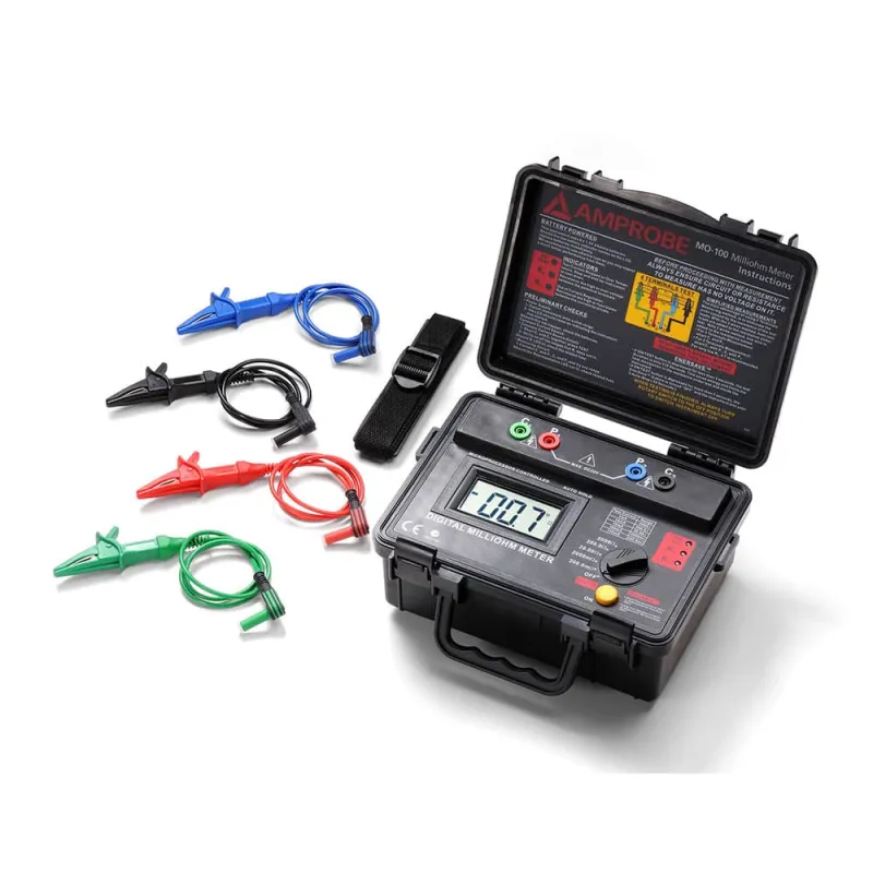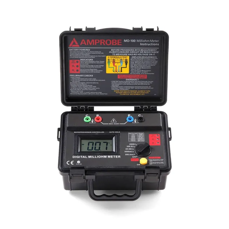 Amprobe 3474954 MO-100 Portable Battery Powered Milliohm Meter with Shoulder Belt and Accessories