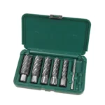 - Cutter Kit Includes 1″ Depth Annular Cutter Diameters:9/16″, 11/16″, 13/16″, 15/16″, 1-1/16″, pilot pin & carrying case
