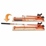 The MBC-16B1 is a manual rebar cutter and bender designed for cutting and bending #3 (10mm), #4 (13mm), and #5 (16mm) rebar. It features a reinforced handle and compact mounting board for superior leverage and easy storage.