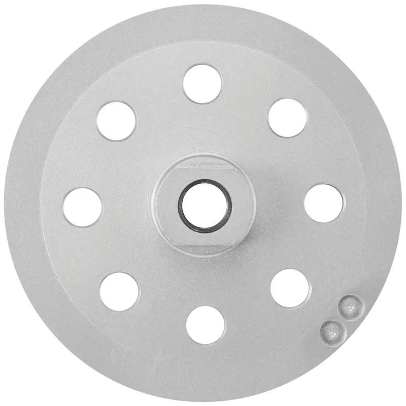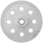 The Bosch Turbo Diamond Cup Wheel provides controlled material removal and a smooth final grind for concrete. Holes in the steel body were added to aid dust control. The wheel itself is precision balanced for less vibration and a better grind. The wheel is more durable than bonded abrasive wheels for concrete and masonry applications, and it can be used for wet or dry grinding. It features a spin-on thread interfaces for toolless mounting to an angle grinder.