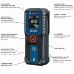 This BLAZE™ 100 Ft. laser measure is a fully featured tool with a brighter graphic display and new user-interface design for easier measuring. The graphic display illuminates numbers with distinct resolution, for work in low-light or no-light conditions and better readability. The display features intuitive icons, big-number mode and upgraded contrast to make it easier to read. The user-friendly layout features two-button operation: one for measuring, one for rounding. The rounding button is a unique function that allows user to easily round the measurement result from 1/2 In. up to 1/32 In. It has default real-time measurement mode, immediately providing accurate measurement that automatically adjusts closer to or farther from the target. The laser measure features an enhanced user interface, including a click wheel for easy setting and function navigation. Its keypad design includes a standalone recessed measuring button, to make it easy to distinguish just by feel. The grip is slimmer, making the laser easier to handle. This compact measurer is easy to carry and fits in your pocket. It features full rubber overmold housing, which helps protect every major point, with a design similar to a roll cage.