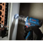 The Bosch 12V Max FlexiClick® 5-In-1 Drill/Driver System is designed for professionals who want a high-quality tool that redefines their limits to get the tough jobs done. At only 1.8 Lbs. and 265 In.-Lbs. of torque, this robust drill/driver delivers the performance you expect in the size you want. It has two speed settings, for quick jobs and precision work. It starts with a magnetic bit holder for basic driving. The four attachments – a locking bit holder, a keyless chuck, an offset angle and a right angle – each attach to the tool securely and easily with the One-Click interface. The right angle attachment is for tight spaces, and it works with all three other adapters. The offset angle attachment delivers precise screwdriving close to edges. Both of these attachments rotate to 16 positions without removing them. The locking bit holder attachment locks hex bits for high-torque drilling, while the keyless chuck provides locked-in drilling.