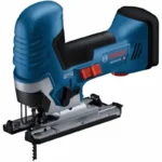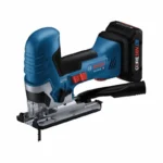 This 18V cordless jig saw is engineered for curve cuts, delivering strong and manageable power. The Bosch GST18V-50B 18V Barrel-Grip Jig Saw provides corded performance, with a cutting capability up to 4.9 In. in wood and 500 to 3,500 strokes per minute speed. It provides a variable-speed dial allows matching the speed to material. The jig saw has four orbital-action settings for cut control. The large die-cast aluminum footplate with no-mar plastic overshoe to help prevent damage to the workpiece. It is compatible with guide rail and circle adapter. The cut lines stay visible due to the dust blower and LED light. The jig saw features a tool-free T-shank blade-change system.