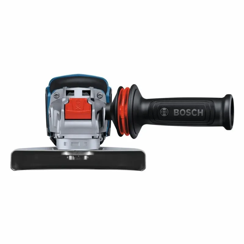 The Bosch GWX18V-13P 18V X-LOCK 5 – 6 In. Angle Grinder with Paddle Switch delivers the power to get the job done combined with the convenience of the innovative X-LOCK mount. It is the ultimate combination of performance, control and power in a cordless grinder. The X-LOCK mount offers a wheel change interface that’s up to five times faster than conventional interfaces. There’s an audible snap when mounting an X-LOCK wheel on an X-LOCK grinder. The wheel mounts properly without the need for a spanner wrench or flange nuts. The wheel is released from the grinder with the pull of a lever. This tool is part of the PROFACTOR™ System, which pairs BITURBO Brushless™ Technology with a CORE18V® High Power Battery. BITURBO Brushless™ Technology is a high-performance motor and drive-train system designed to deliver performance comparable to high-demand corded tools. The grinder includes other advanced electronics such as X-Brake, restart protection and KickBack Control. It features a multi-grip paddle switch, which provides increased grip options for better comfort and control. It also features spiral bevel gears, a narrow grip size and a two-position Vibration Control side handle. The adjustable tool-free guard is designed with multiple fixed-adjustment settings to allow the user to position the guard in a variety of working angles. The kit includes a CORE18V® 8 Ah High Power Battery, which delivers 50% more runtime and over 75% more power than the CORE18V® 4 Ah battery, powering high-demand applications.