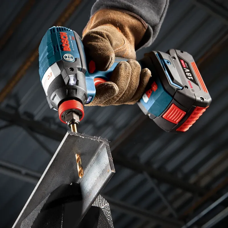 Bosch Impact Tough™ Titanium Drill Bits provide 2X life over standard impact drill bits. Designed for use in the higher torque impact drill/drivers, they have an upgraded tip design for no-skate starts and a titanium cooling shield thanks to the titanium nitrate coating. The coating provides less friction and thus less generated heat. The bits have impact-rated shanks. Electricians, plumbers and HVAC pros will appreciate the tough construction of the bit, rated for heavy-gauge carbon steels, as well as light gauge metal and hardwood applications.