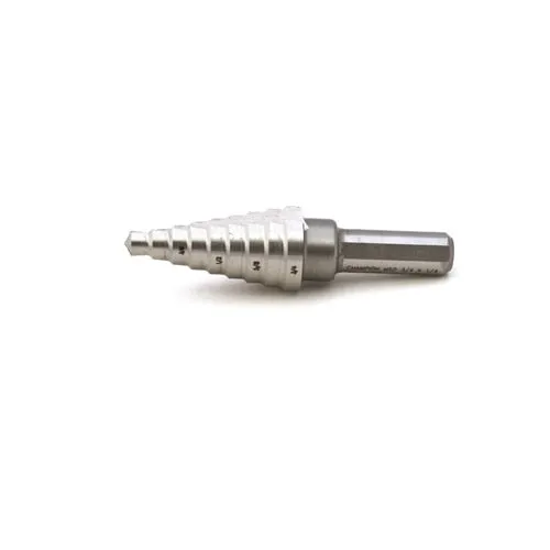 Champion’s Multi Step Drills are designed to create clean, accurate bur-free holes of multiple diameters in all sheet metals up to 1/8″ thick. Self starting tip eliminates the need for pilot hole drilling, while the balanced double flute design provides less chattering. Step drills are used for drilling junction boxes, switch boxes, metal studs, electrical appliances, lighting fixtures, PVC, plexiglass, and auto body repair.