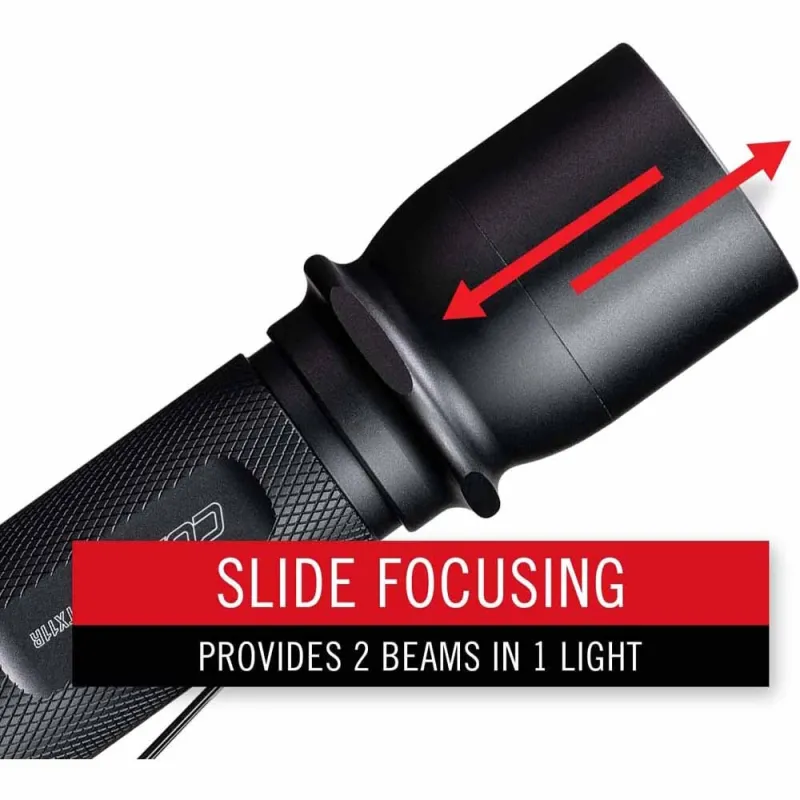 • Slide Focus: Easily adjust between spot and flood beams with one-handed control for convenience.