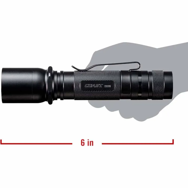The Coast TX17R Tactical Rechargeable Plus Flashlight delivers versatile lighting with the COAST PURE BEAM® system, offering smooth transitions between Ultra View Flood and BULLS-EYE™ Spot beams. With 1250 lumens and a 234-meter (767-foot) beam, it features three modes and a SLIDE FOCUS® system for easy beam control. The anti-roll bezel ensures stable hands-free use, and it runs up to 21 hours on low. Rechargeable via USB-C or powered by two CR123 batteries, the TX17R is built with durable aluminum, IP54 water and dust resistance, and a lifetime warranty.