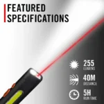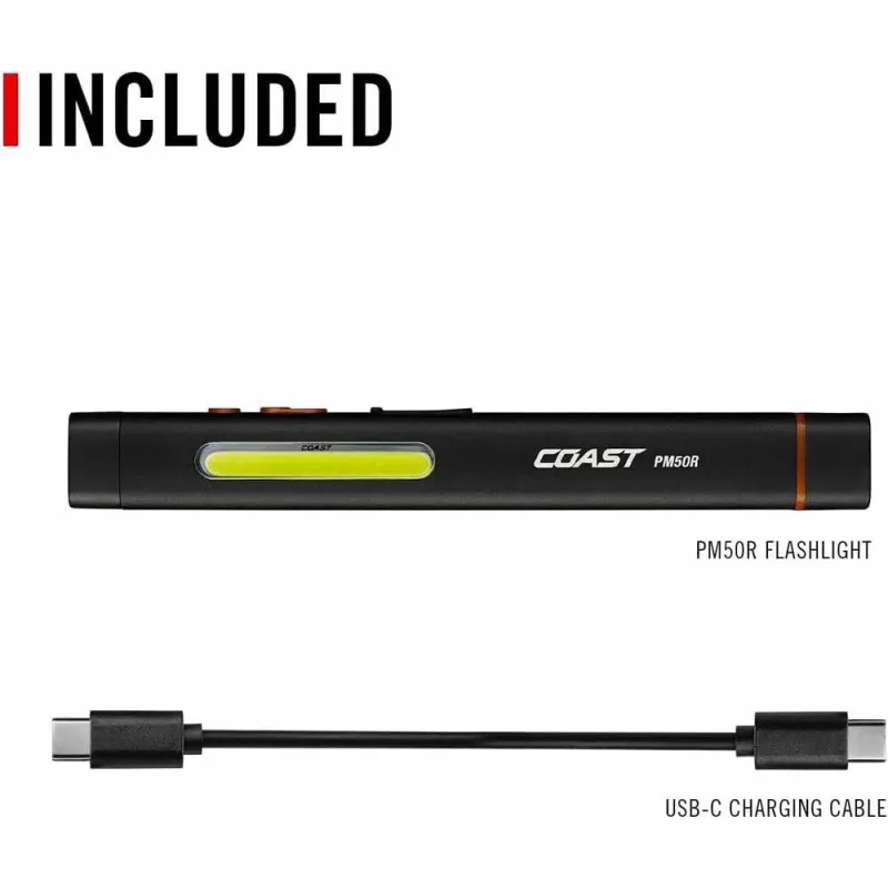 The Coast PM50R Rechargeable Magnetic Dual Beam Work Light offers versatile illumination with a 255-lumen BULLS-EYE™ Spot Beam for long-distance lighting and a C.O.B. side area light for close-up work in White, Red, and Flashing Red. Featuring a front-facing Red LED Laser Pointer, magnetic tail cap, and pocket clip, it provides hands-free positioning for any task. With a 5-hour runtime, real-time battery status, and a durable IP54 rating for dust and water resistance, the PM50R is perfect for tough jobsite conditions.