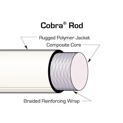 Python rods are best suited for less demanding applications. It has strength properties similar to our Cobra rod, but is more flexible. Also, like the Cobra, it has a heavy-duty outer plastic coating to resist abrasions and reduce wear. Includes one male and one female end fitting, and a tapered head.