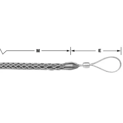 Slack Grip – Split Mesh, Rod Closing Pulling Grips are made of high strength galvanized steel in a single weave construction with a single eye. The split rod closing style grip is used when the cable end is not accessible. All grips feature a single offset eye for easy attachment to a pulling line. They are used to pull in slack for final placement of underground cable after it has been pulled in. They are also used for removing cable.