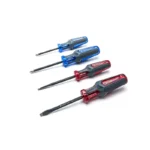 The Crescent 4 Piece Screwdriver Set features diamond coated tips that help to maximize gripping power while driving and removing fasteners. These drivers also feature co-molded acetate handles for comfort and durability while fastening. The drivers are color coordinated by handle for quick identification on the job.