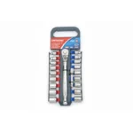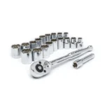 The world famous Crescent brand tool sets contain a carefully selected assortment of Crescent mechanic and hand tools. All tools in this set meet new ANSI and ASME specifications and come with a full satisfaction guarantee. Crescent has been providing quality tools. trusted by the trades, since 1907. This set includes one 3/8″ drive 60-tooth quick release ratchet, one 3/8″ drive 3″ extension, and 3/8″ drive 12 point sockets sizes in 5/16″, 3/8″, 7/16″, 1/2″, 9/16″, 5/8″, 11/16″, 3/4″, 13/16″, 9mm, 10mm, 11mm, 12mm, 13mm, 14mm, 15mm, 17mm & 19mm sizes.
