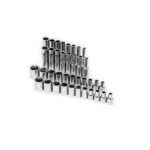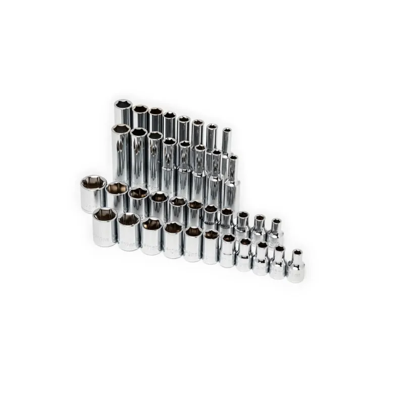 • Shallow and deep SAE/metric 6 point full polish chrome sockets with stamped size markings for easy socket identification