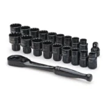 The Crescent X6 Pass-Thru Ratchet and Sockets set provides you with the innovation of the X6 design in the box end, allowing you to grip 6 different types of fasteners. Discover the convenience of pass-thru sockets that functionally replace one deep and one standard socket, and access restricted fasteners with the low-profile ratchet and socket combinations. This set includes the following sizes: 10mm, 11mm, 12mm, 13mm, 14mm, 15mm, 17mm, 18mm, 19mm, 3/8″, 7/16″, 1/2″, 9/16″, 5/8″, 11/16″, 3/4″, 13/16″, and 7/8″.