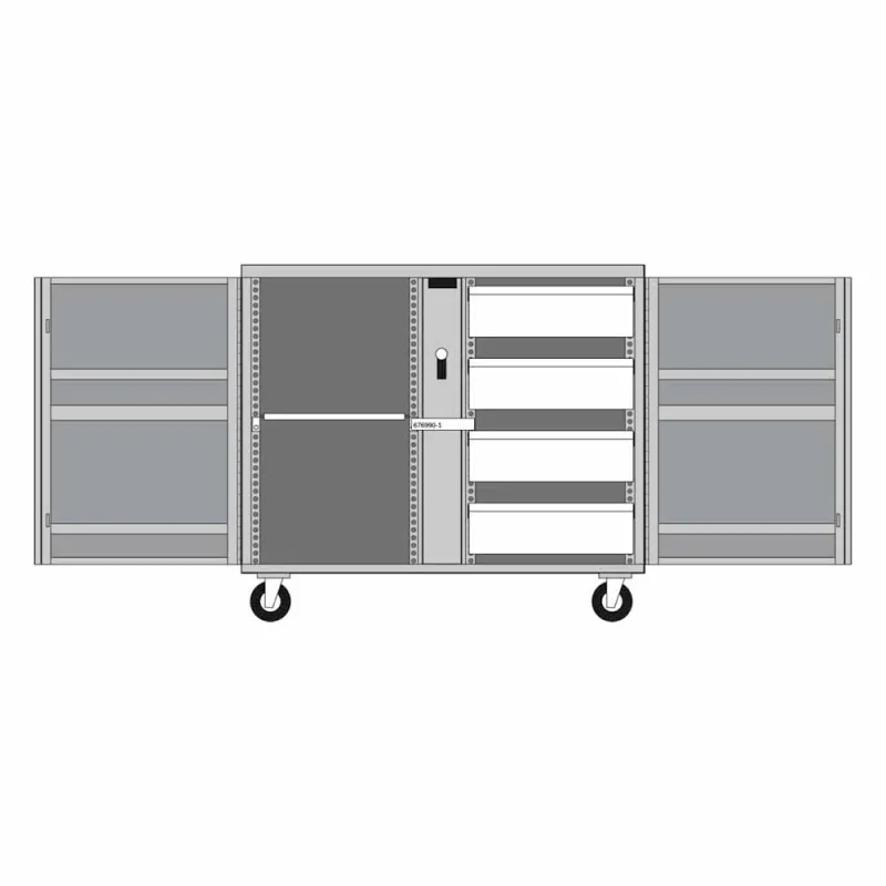For the ultimate in portability and accessibility, the Rolling Work Bench provides superior strength casters, shelving and drawers to meet the most arduous working environment demands. Users can arrange the Rolling Work Bench into four unique configurations to meet their particular storage needs.