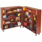 The JOBOX Clam Shell Cabinet offers an easy to move storage solution with optimal organization and security options. 10-Gauge specially designed latching hasp prevents pry bars and cutting tools from accessing the cabinet. Movable top and bottom shelves, open storage closet, and lockable storage areas are all included in the versatile Clam Shell cabinet.