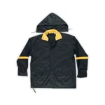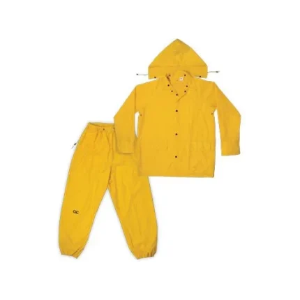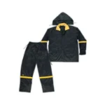 | Design | premium quality 3-piece nylon rain suit with jacket, drawstring, elastic waist pants, and a detachable drawstring hood. |