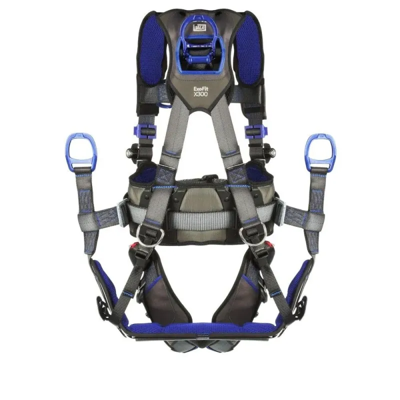 3M™ DBI-SALA® ExoFit™ X300 Comfort Tower Climbing/Positioning/Suspension Safety Harness is equipped with aluminum hip, back and front D-ring locations. The X300 comfort harness is built with 6,000lb polyester webbing, robust nylon/polyester hybrid comfort padding with reflective 3M Scotchlite™ panels, and lightweight aluminum hardware. Locking torso adjustment and auto-locking quick-connect buckle options are available to optimize fit and worker experience. Available in Small, Medium, Large, X-Large, 2X-Large sizes.
