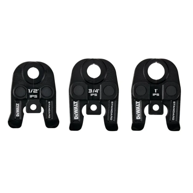Engineered for carbon steel (black iron pipe) pipe pressing, this adaptable 1/2 in. to 1 in. Standard Press Iron Pipe Size (IPS) Jaws Kit is designed to deliver balanced distribution of force while maintaining long-term, professional-grade durability. Defend against corrosion and rust buildup with a black, galvanized finish. These press jaws are built for use with the DEWALT® 20V MAX* Press Tool DCE200 (sold separately) and are compatible with most widely used professional-grade press fittings. Keep everything organized with the included TOUGHSYSTEM® 2.0 Tool Box.