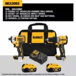 The DeWalt DCK249M2 20V MAX XR Brushless 2 Tool Combo Kit includes a brushless hammer drill and impact driver, along with two 4.0Ah batteries and a charger.