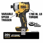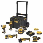 This DEWALT 20-Volt MAX Brushless 6-tool combo kit includes one 1/2 in. hammer drill/driver, 1/4 in. impact driver, oscillating multi-tool, 6-1/2 in. circular saw, XR 4-1/2 in. grinder, XR 5 in. random orbital sander , one 20-Volt MAX 5.0 Ah battery, one 20-Volt MAX 2.0 Ah compact battery, charger, and TOUGHSYSTEM 2.0 storage box. The DCD799 ATOMIC hammer drill/driver gets up to 14% more power for a variety of drilling applications. The DCF809 ATOMIC is equipped with a high-power transmission to deliver 1.700 in-lbs. of torque. The DCW210 XR Random orbital sander has variable-speed dial provides ultimate speed control from 8,000 OPM to 12,000 OPM for a variety of sanding applications. The DCS354 ATOMIC oscillating multi-tool had a dual-grip variable speed trigger to provide additional speed control during your applications. For added safety the DCS566 circular saw is equipped with an electric brake that quickly stops the blade after the trigger is released. The DCG405 XR grinders Power Loss Reset prevents accidental restarts following a power disruption when the tool is left in the “on” position.