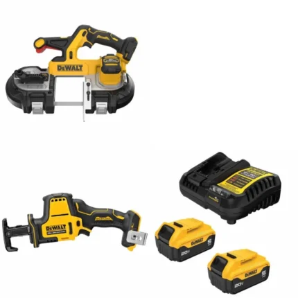 - DCS379B Dual Switch Band Saw: Offers a 3-3/8″ cut capacity and a brushless motor for demanding applications.