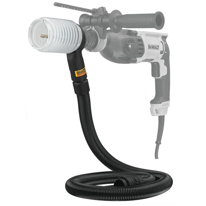 The DWH200D is the industries first OSHA® Compliant Solution for SDS Plus Rotary Hammers, and corded/cordless hammers drills. This total tool sloution allows users to collect harmful silica dust with SDS plus and percussion bits. The three percision tuned clear tubes allow users to work with Stop BIts, bits up to 6″, and bits up to 10″ in length. The 4′ long anti-static hose comes equiped with an AIRLOCK(TM) connection. The DWH200D is an OSHA® objective data compliance solution when used without a vacuum and OSHA® Table 1 compliant when used with a dust extractor, providing users the choice to determine the best method of collecting dust for there application.