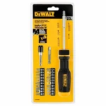 The DEWALT MAX FIT Multi-Bit Ratcheting Screwdriver is designed for maximum fit in fasteners and reduces the potential for stripped screws. A gnurled all-metal ratchet provides users with benefit of turning without having to stop and adjust wrist position. Lastly, the the soft, ergonomic, bi-material grip offers maximum comfort and torque, while also offering bit-storage in the end of the handle.