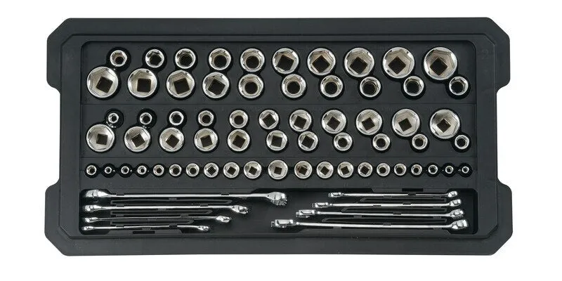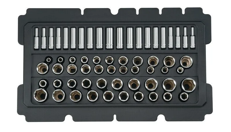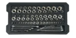 • Comprehensive 1/4 in., 3/8 in., and 1/2 in. drive assortment in 3 easily removeable