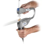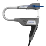 The Dremel Moto-Saw is a multi-functional scroll saw and coping saw in one. It offers a compact and easy solution for making detailed cuts in a variety of materials, including wood, plastic, laminates and metal. This portable, precision saw is easy to store, set-up, and operate and features a tool-free mechanism for quick blade changes. An auto-tensioning feature keeps the blade taut and ready to cut so you don’t have to make blade adjustments, and its slim, ergonomic handle with comfort grip provides control in any cutting position. The Moto-Saw functions as a stationary scroll saw, yet it can be removed from its base to become a portable electric coping saw.