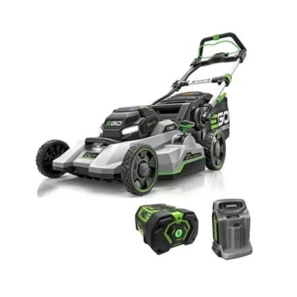 The EGO POWER+ 21″ Select Cut™ XP Self-Propelled Mower delivers 8.3 foot-pounds of torque that exceeds the power of gas without the noise, fuss, or fumes. The Select Cut™ Multi-Blade Cutting System is equipped with three interchangeable lower blades: the Mulching Blade, High Lift Bagging Blade, and Extended Runtime Blade. The Mulching Blade comes installed on the lawn mower and is ideal for weekly mulching, giving you the mulching quality expected from a high-end gas lawn mower. The High Lift Bagging Blade provides extra suction ideal for bagging, leaving your yard free of clippings. The Extended Runtime Blade provides an optimal balance of cut quality and runtime for all around performance. All three blades can be used interchangeably based on your desired cut. The Upper Blade is used in combination with the lower blade chosen to slice the grass into fine fragments, greatly enhancing cutting performance with all grass types. EGO Touch Drive™ self-propelled technology puts complete control of the self-propel system in the palm of your hands by using pressure to engage the system. Easily control the variable speed with a dial positioned at your fingertips for safe and convenient operation. The Select Cut™ XP cordless lawn mower harnesses the power of the industry’s most advanced 56V ARC Lithium™ batteries to deliver up to 75 minutes of runtime on a single charge with the recommended 10.0Ah battery (available separately). Three-in-one functionality delivers your choice of mulching, side discharge, or bagging your grass clippings; an easy-access two-bushel grass collection bag is included. This electric lawn mower includes bright LED lights for added visibility when mowing at dawn or dusk, and it folds for compact storage between cuts. Experience Power Beyond Belief™ with the EGO POWER+ 21″ Select Cut™ XP Self-Propelled Lawn Mower.
