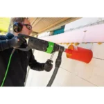 The ESD 162 can be used handheld up to 3″ diameter or mounted to from the available BST 162 H anchor stand for reduced user effort and increased productivity and accuracy. It can also be used for hand or rig-guided drilling of walls and ceiling openings in sanitary, heating, and ventilation construction, and comes with a dust extraction system to maximize user safety. *For safety drilling over 3″ diameter, mounting in the BST 162 H stand is required.