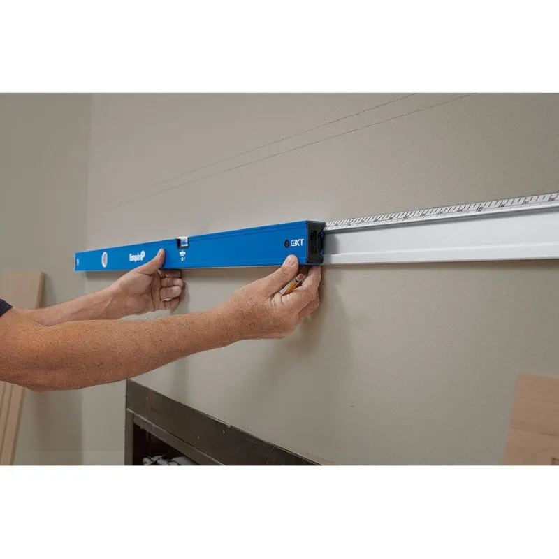 The Empire® 48” – 78” eXT Extendable TRUE BLUE® Box Level provides users with the most versatile performance with the ability to extend for exact fit in any job. The extendable box level enables users to achieve a perfect fit in custom or odd size applications with constant surface contact for an accurate read across the full length of material. The adjustable sizing allows users to replace up to 3 levels and carry less while maintaining productivity to complete the job. The adjustable slide control mechanism allows for customizable friction fit resistance and long life performance. The Empire patented e-BAND™ Vial Technology provides users with superior readability and reliable 0.0005”/in accuracy. The extendable level’s mark & scribe edge allows for continuous scribing across the full length of the level, even when extended. The Empire 48” – 78” eXT Extendable TRUE BLUE® Box Level offers leading versatility and accuracy for all tradespeople and the applications they face on a day-to-day basis.