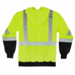 This safety sweatshirt has a pouch-style pocket great for additional hand warmth and storage. The bottom front and wrist sections of the sweatshirt are black to prevent a dirty look where it matters most. The contrasting high visibility yellow/lime color provides ultimate visibility. There is 2″ ANSI-compliant silver reflective tape on the torso, shoulders and sleeves making it a great reflective hoodie to wear as night falls for effective visibility. The drawstring hood and elastic knit waistband and cuffs keep the heat in for all-day warmth throughout the workday.