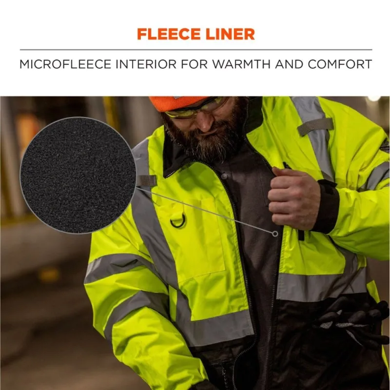 The GloWear 8351 Hi-Vis Windbreaker features a breathable polyester ripstop shell with PU coating for water- and wind-resistant protection from the elements and a soft lightweight fleece lining adds warmth and comfort for cool environments. Unlike typical boxy and bulky hi-vis gear, this lightweight jacket is designed for a more athletic fit. The lightest weight jacket in the GloWear line, this windbreaker allows for ease of movement and comfort on and off the jobsite.