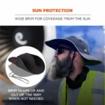 The Skullerz 8957 Lightweight Ranger Hat features the Skullerz 8943F(x) hinged impact-resistant bump cap insert for flexible, breathable protection against bumps, scrapes, bruises and other minor head injuries. The included drawstring chin cord has an integrated breakaway feature for a custom, secure fit with reduced risk of injury from snag hazards. This polyester hat is not stiff or bulky and provides lightweight, breathable head and face shade for working in the sun. Featuring a wide brim that can be worn down or snapped up and out of the way, this sun hat features laser-perforated side panels for maximized airflow. Available in 3 different sizes—ranging from 6 ¼ to 8 ½—it is designed with a buckle closure and adjustable rear sizing strap for a custom fit. Reflective accents and piping help ensure workers are seen in low-light conditions.
