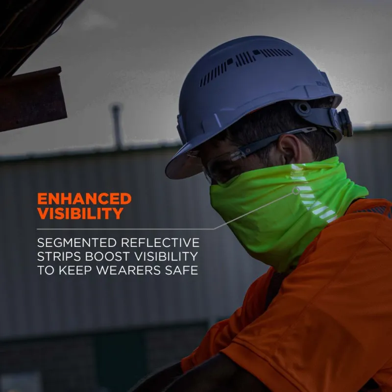 Unique to this cooling neck gaiter are segmented reflective stripes, strategically placed on the back of the neck where the worker cannot see. Combined with the hi-vis orange or lime color, it boosts visibility to keep workers safe and seen day and night. The segmented design makes sure the reflective does not interfere with the multi-band’s flexibility for comfortable wear in a variety of ways.