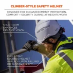 • CHIN STRAP INCLUDED – Secures helmet in place upon falling or sudden impact/movement and meets ANSI Z89.1-2014 Type 2 and EN12492 design, strength and effectiveness requirements