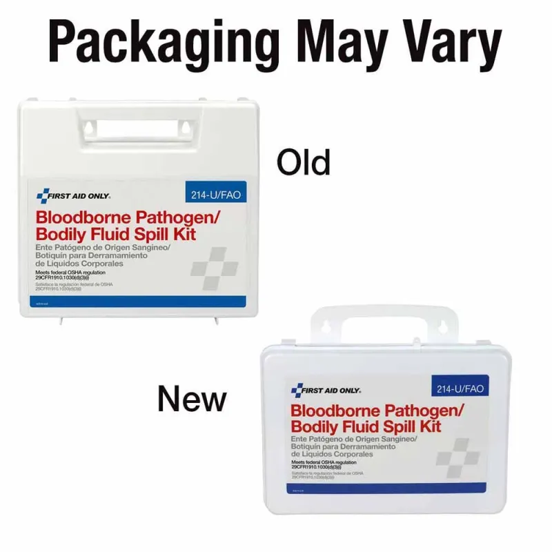 First Aid Only 214-U/FAO Wall-Mount Bloodborne Pathogen (BBP) And Bodily Fluid Spill Kit In Plastic Carry Case, OSHA, 23 Pieces, White