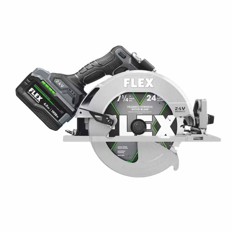 Rip through miles of 2x4s with the FLEX 24V Brushless 7-1/4″ Circular Saw. This lightweight and durable beast is built for advanced cutting performance and ultimate cutting capacity (up to 2-5/8″). Built-in LED light illuminates workpiece, providing superior precision and accurate cuts. This saw’s powerful motor is maximized by the FLEX Stacked Lithium Advantage: unmatched 24V battery power, runtime, and fast charging speed. Includes saw, two 24V batteries, and charger.