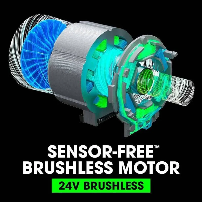 • SENSOR-FREE™ BRUSHLESS MOTOR – Every FLEX 24V tool is built around an intelligent Sensor-Free™ brushless motor. This improves durability, efficiency and control while reducing overall tool size