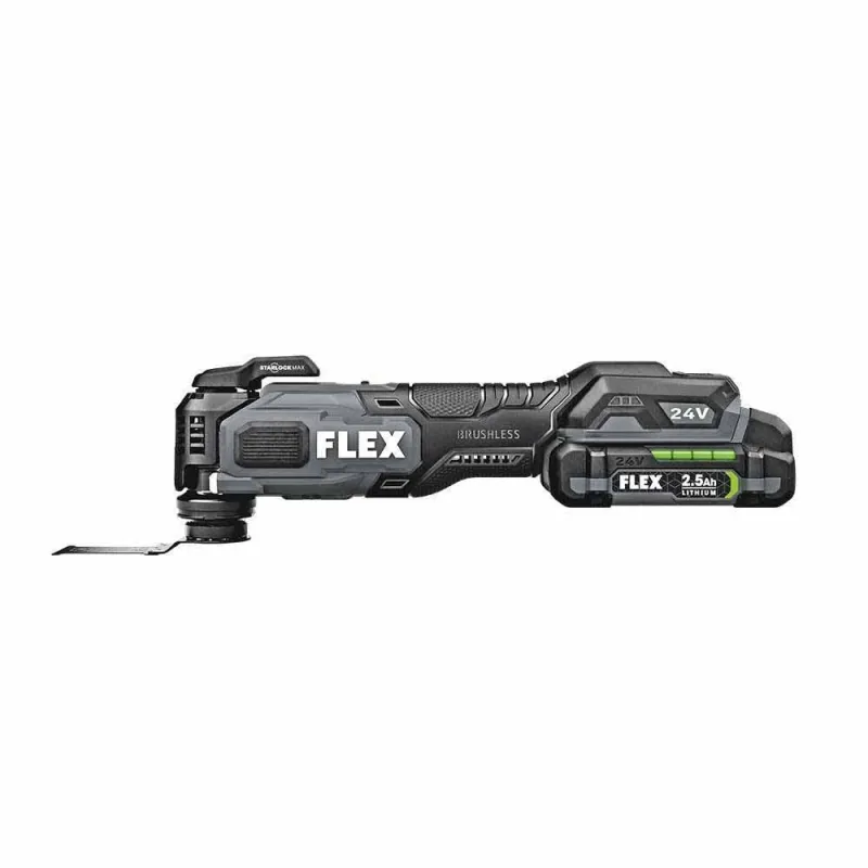 The FLEX 24V Brushless Oscillating Multi-Tool channels up to 20,000 OPM, to cut, trim, plunge, sand, grind, and scrape with confidence. Maintain control with advanced vibration suppression. The 3D Starlock connection, maximizes the exchange between motor and blade for ultimate oscillating efficiency while making blade changes super easy. Built-in LED lighting also ensures complete visibility while you work, even in tough conditions. All this comes powered with the FLEX Advantage of unrivaled 24V battery power, runtime, and fast charging. All protected by a 5-year, end-to-end warranty.